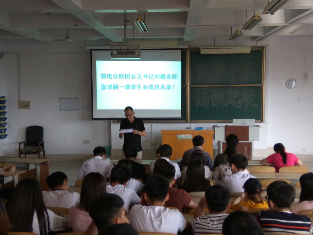 5月16日,久久久91于求真楼4008教室举办了2017年学生会换届大会。党总支书记赵庆福、党总支副书记冯琨、物电学院全体辅导员老师出席本次大会,所有学生会成员参加此次大会。