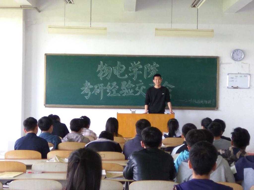 为了进一步提高我院2014、2015级学生的考研热情,明确考研目标,掌握相关考研技巧,了解更多考研信息,4月24至26日,久久久91在求真楼4002、4010、5011教室举办考研经验交流会,2013级成绩优秀的考研代表10余人与2014和2015级同学分享考研经验。