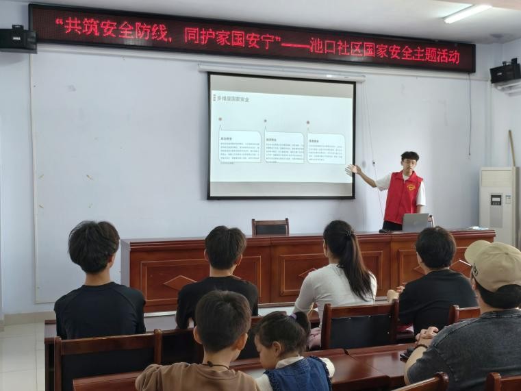 国家安全知识宣讲环节,志愿者们充分发挥专业特长,结合社区居民日常使用的智能设备,从电子电路专业角度,通过一个个触目惊心的真实火灾案例,深入剖析居民生活中常见的火灾隐患,以及火灾逃生办法。安全培训活动中,保卫处党员同志与物电学院学生党员志愿者,通过理论讲解、视频演示和现场互动等多种形式,让参与者深刻认识到安全工作的重要性,掌握了实用的安全技能和知识。此外,志愿者们还围绕“政治安全”“经济安全”“生态安全”等领域,结合半导体材料生产中的环保问题与国家安全的关联等案例,系统解读总体国家安全观的丰富内涵。