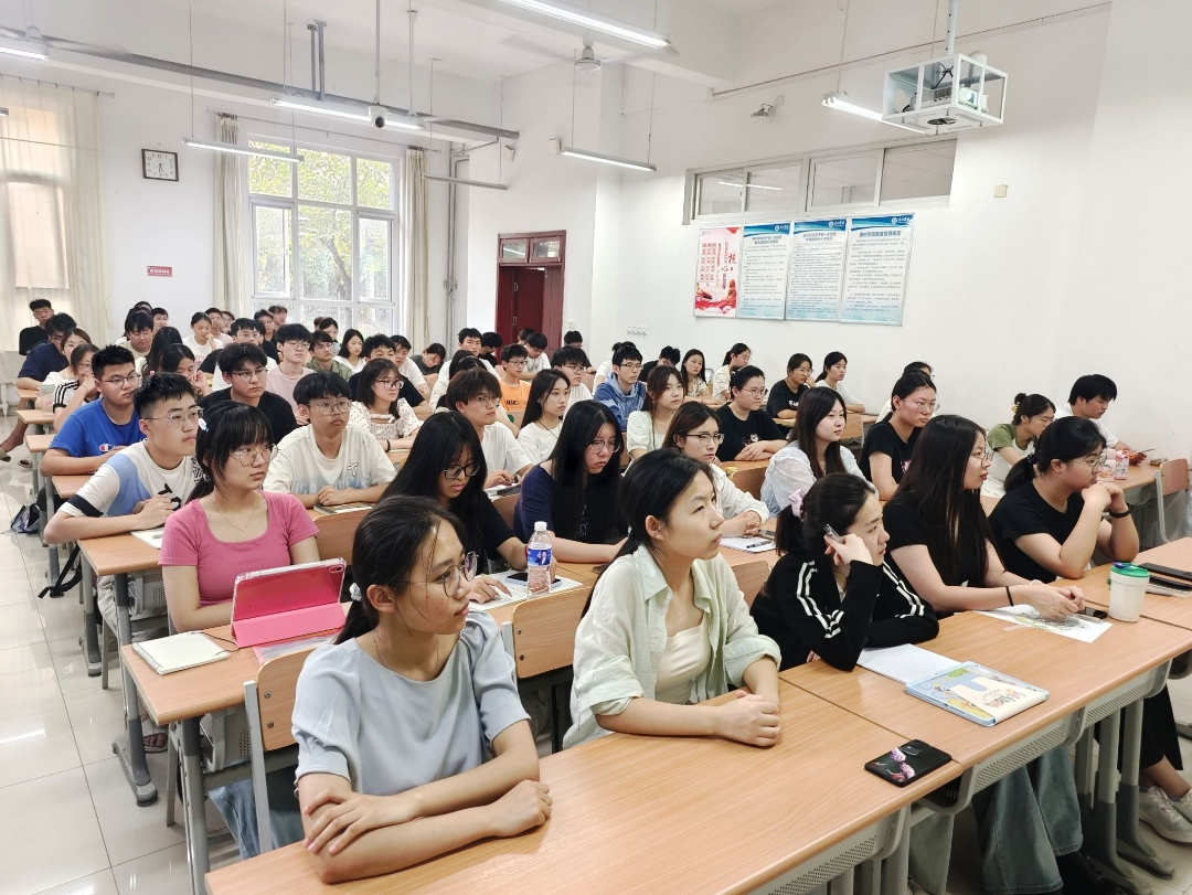 课堂上,董文会以“时代召唤与青年使命”为切入点,结合当前科技创新对国家发展的核心作用,她以“墨子号”团队青年科研人员为例,阐述了青年在科技创新中的主力军地位,强调青年需以党的指引为方向标,勇攀科技高峰。同时结合学院特色,重点展示了物电学子在“挑战杯”“互联网+”等学术竞赛中斩获的优异成绩,并系统展望了学院在量子物理、集成电路等前沿领域的科研规划,彰显学院党建与科研育人深度融合的成果,为学生指明奋斗方向。对于青年学子如何更好的实现个人成长,她提出三点期望:一是夯实专业基础,深入钻研核心理论知识,构建系统扎实且前沿的知识体系,掌握科学高效的学习方法,全方位增强“学习力”,二是投身科研实践,主动地参与到各类研究项目和实践中去,从基础环节入手,勇于动手实验,在实践中锻炼发现问题、设计解决方案的本领,深层次提升“创新力”,三是融入团队协作,深刻理解并认同团队共同的目标与愿景,找准自身定位,勇于承担责任,并主动协作补位,相互支持,多维度凝聚“向心力”。