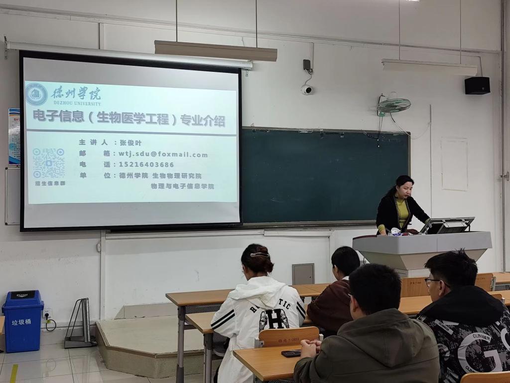 为提高同学们对电子信息(生物医学工程)专业特色和专业优势的了解,同时也为专业招生进行宣传推广,10月18日,物电学院在明理楼216教室开展电子信息(生物医学工程)专业介绍宣讲活动。