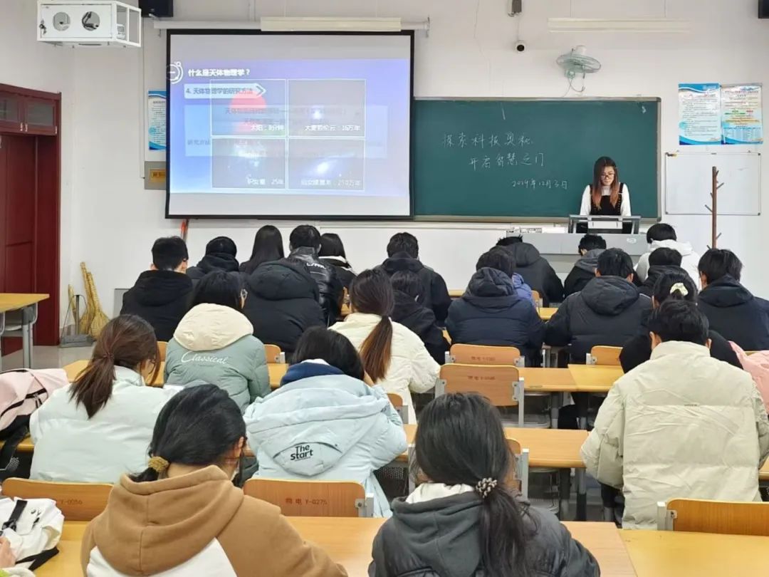 活动中,主讲人以精彩的课件引入天体物理学,详述其作为天文学与物理学交叉学科的特质,阐释利用物理手段研究天体的关键要点。讲述中,主讲人借哥白尼革命等重大节点,清晰勾勒学科从天体测量到天体力学再到天体物理的发展脉络,使学生们深入领会学科演进逻辑。让同学们充分了解了什么是天体物理,为什么要学习天体物理,以及如何学习天体物理。同学们认真听讲,积极互动,对天体物理表现出了浓厚的兴趣。