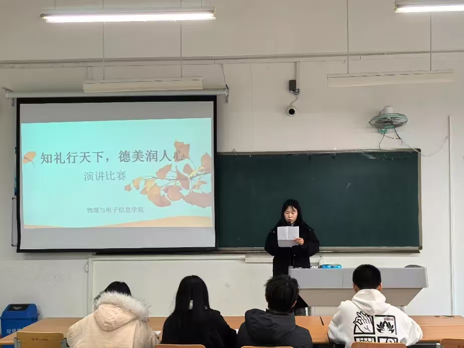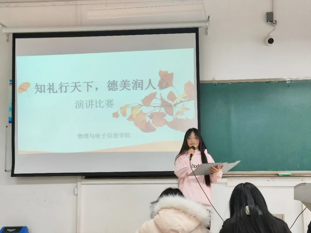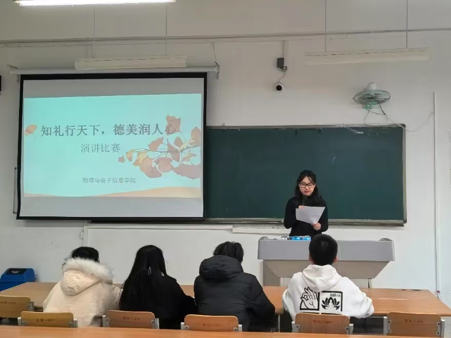 为了塑造学生良好品德,营造学院文明友善的文化氛围,进一步促进大学生人际和谐,推动传统礼德文化的传承与发展,物电学院于12月7日在明理楼0216教室举行“知礼行天下,德美润人心”主题演讲比赛。