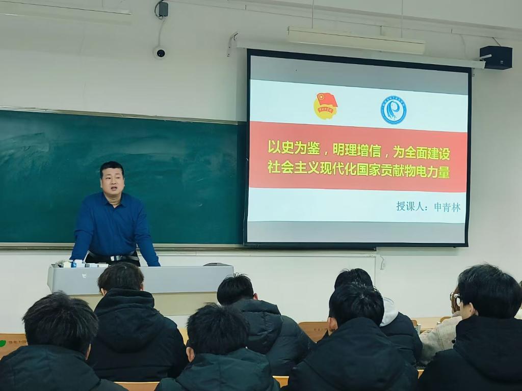 12月9日,物电学院在明理楼0215教室开展“以史为鉴、明理增信,为全面建设社会主义现代化国家贡献物电力量”主题培训活动。学院党委书记申青林结合物电学院发展史所蕴含的精神特质和优秀校友成长历程所展现的意志品格,讲述了物电人听党话、跟党走的奋斗心路。申书记号召与会学生将个人学业发展的方向锚定到全面建设社会主义现代化国家的需要上,在持续改进中培养和成长为可堪大任的时代新人。