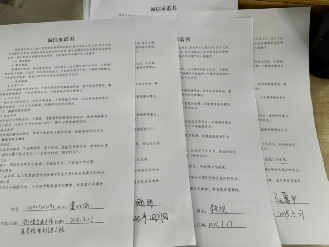 通过签署《诚信承诺书》,增强同学们的诚信意识,引导大家认识到诚信的重要性。