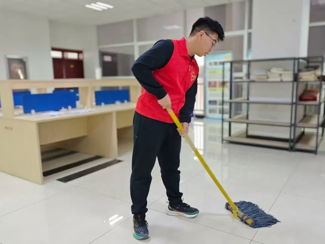 活动开始前,活动负责人向志愿者讲解了活动的清扫区域,并进行了分配任务,在明确了相关任务后,由负责人带领到相应的志愿岗位。志愿者们迅速进入工作状态,图书分类组的志愿者负责将图书分类归好,打扫卫生组的志愿者主要负责擦拭修读点内的桌柜和书架。随后,两组同学一起将书架上散落的图书归类整理并擦去上面的灰尘,小组之间相互配合、十分默契。在大家的共同努力下,修读点的环境质量得到了质的提升,呈现出整洁、有序、充满文化气息的全新面貌,为学院师生营造了更加优质的学习氛围。
