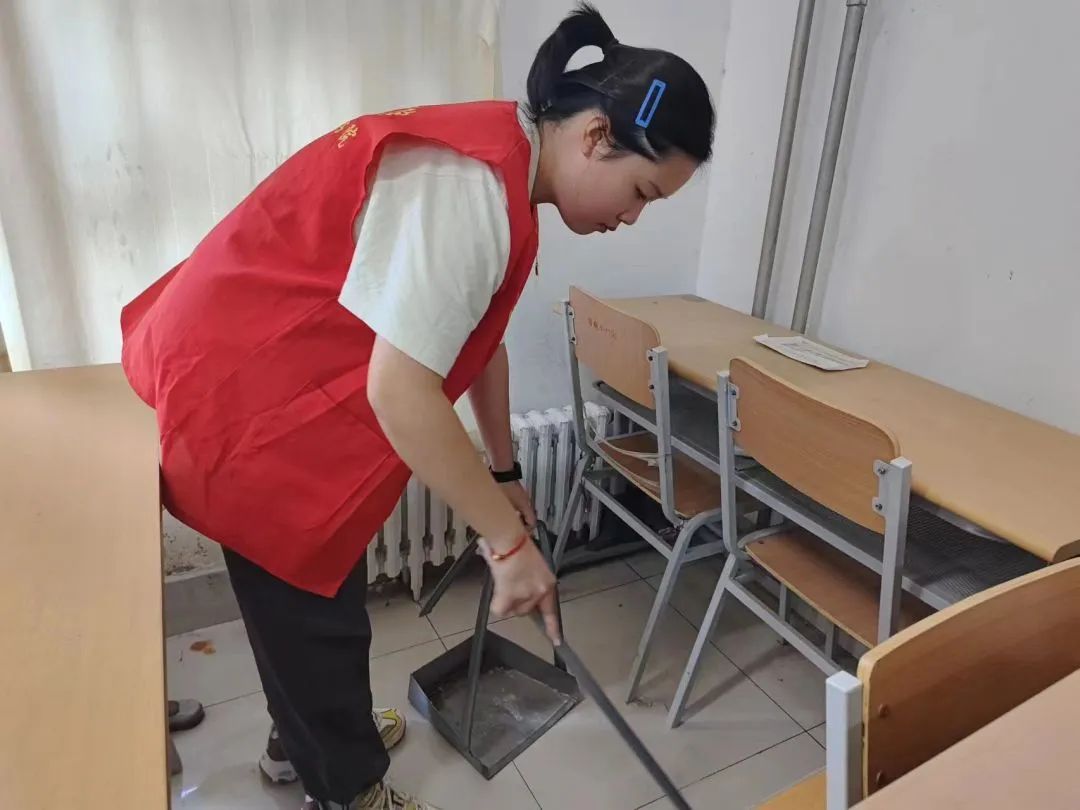 活动开始前,志愿者们分工明确,各自准备拖把、擦布等清洁工具,对教室的地面、桌椅等进行了全面清洁和整理。在志愿者们的共同努力下,清扫工作圆满完成,整个考研自习室焕然一新。