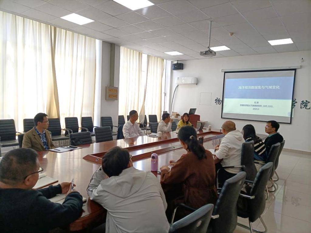 杜娟教授通过题为《海洋数据集与气候变化》的学术报告,以其建立的流体非静力海洋数值模式FLUIDITY中POD降维模式和集合资料同化系统为例,介绍了数据处理技术方法以及在海洋洋流分布、气候变化等方向的应用。报告后,与会教师结合自身研究方向与杜鹃老师就数据模拟和处理方法、信息采集手段等问题进行了交流探讨。