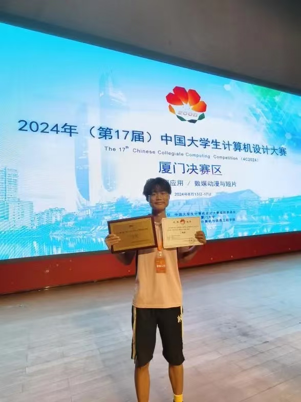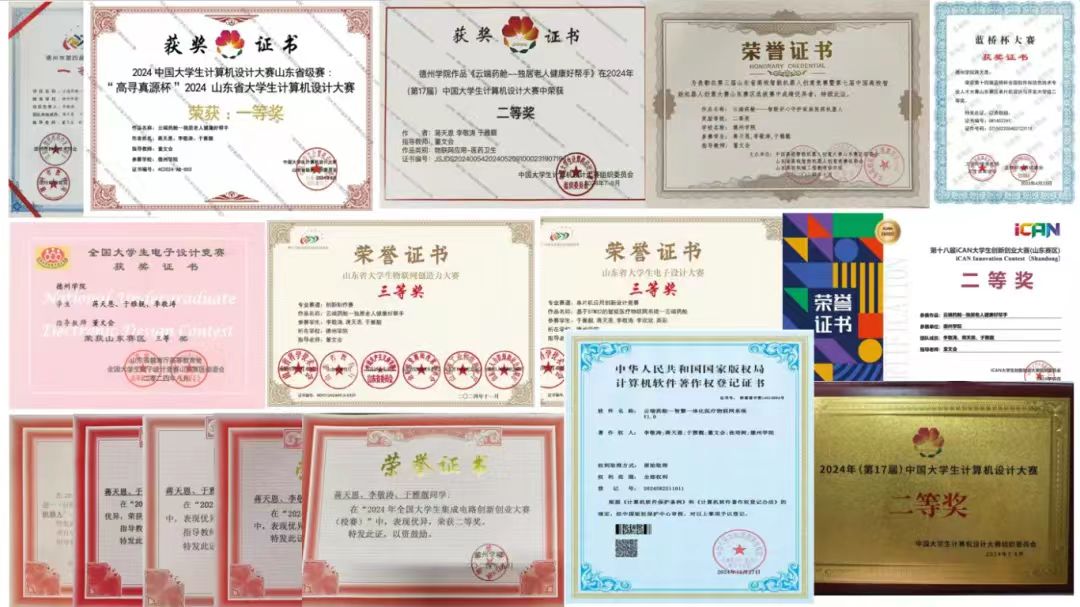 蒋天恩积极参与学科竞赛,他不设边界,积极探索,在理性思考中沉淀,在纯粹热爱中闪光。以学术为志,以竞赛为路,用自己的汗水书写着新的篇章。目前斩获计算机设计大赛国家二等奖、机器人创意省级二等奖、蓝桥杯大赛省级二等奖等国家级以及省级奖项10余项,市校级奖项20余项,并发表软著1篇。